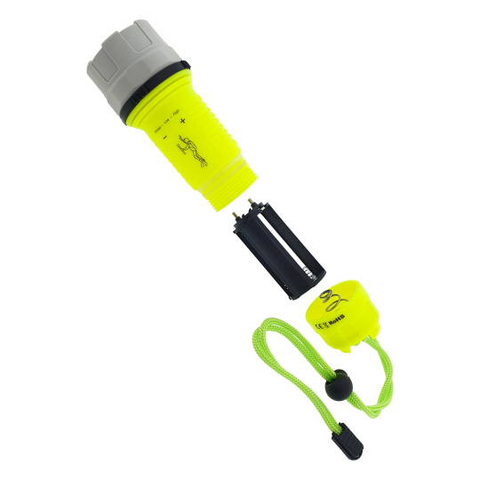 Ruční voděodolná svítilna vhodná pro potápění. Díky poutku ji bezpečně připevníte na ruku. Vybírat můžete ze tří módů svícení, vysoký jas, střední a blikání. Stupeň krytí IP68.