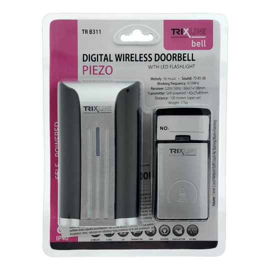 Bezdrátový zvonek Trixline BELL se světelnou signalizací je skvělé řešení všude tam, kde není možné nainstalovat klasické drátové připojení. Mezi hlavní přednosti patří velmi snadná montáž, bezbateriový provoz PIEZO tlačítka.