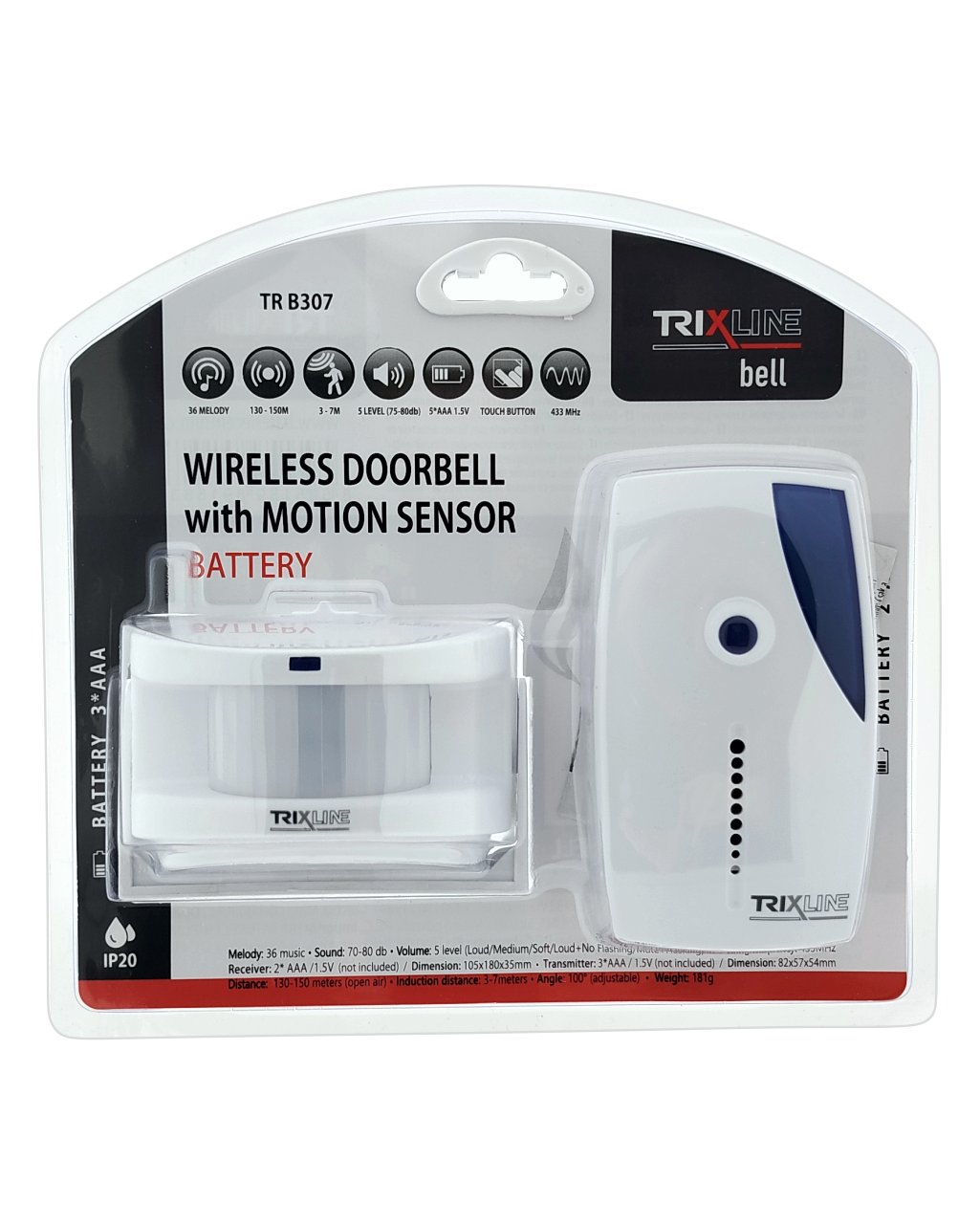 Bezdrátový zvonek na baterie Trixline BELL TR B307