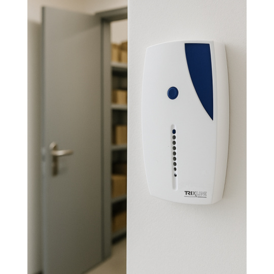 Bezdrátový zvonek Trixline BELL se světelnou signalizací a senzorem pohybu je skvělé řešení všude tam, kde není možné nainstalovat klasické drátové připojení. Mezi hlavní přednosti patří velmi snadná montáž, provoz tlačítka i zvonku na baterie. Velmi vhodný je např. do obchodu, vysílač lze použít samostatně a při vstupu zákazníka se díky senzoru sám spustí.