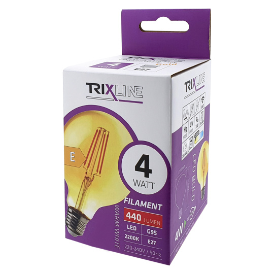 Dekor LED izzó FILAMENT Trixline 4W 440lm G95 E27 meleg fehér