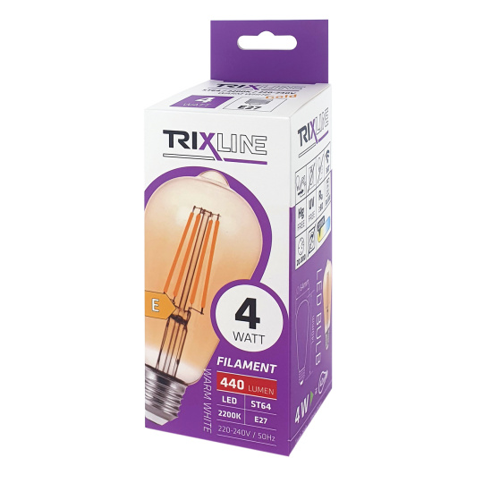 Dekorační LED žárovka - Gold FILAMENT 4W 440lm ST64 E27 teplá bílá Trixline