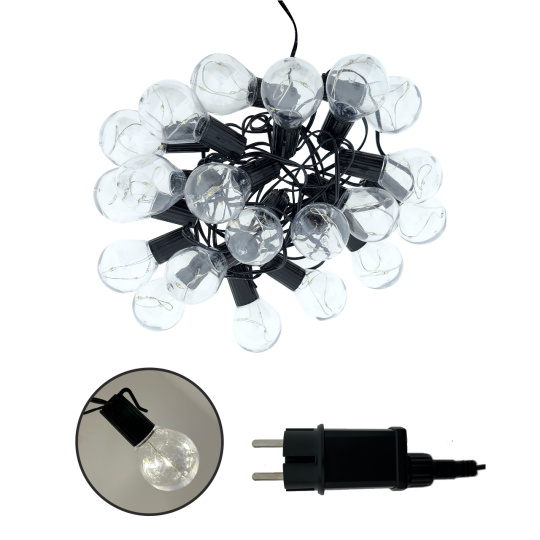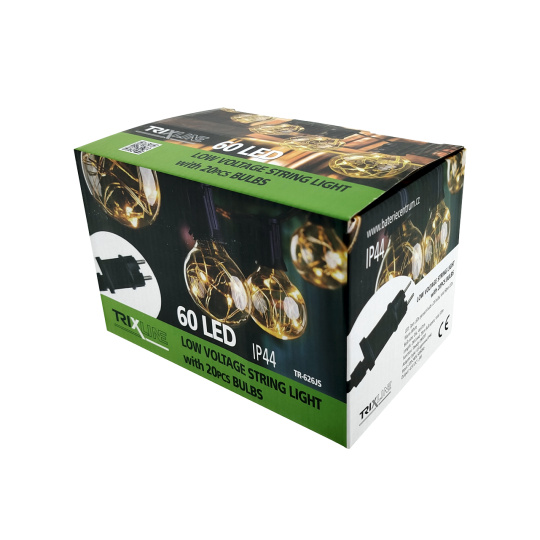 Vytvořte si příjemnou atmosféru na zahradě, terase nebo balkóně s dekorativním LED osvětlením TR-626JS. Tento světelný řetěz obsahuje 20 stylových žárovek, z nichž každá ukrývá 3 teplé bílé LED diody (2700K) – celkem tedy 60 LED na celkové délce 5,8 metru. Robustní plastové provedení s krytím IP44 zajišťuje odolnost vůči povětrnostním vlivům, a je tak ideální pro venkovní použití. Světelný řetěz je napájen ze sítě (220–240 V) a má bezpečný výstup 4,5 V DC / 1,5 W. Díky 2 metrovému přívodnímu kabelu je instalace snadná a flexibilní.