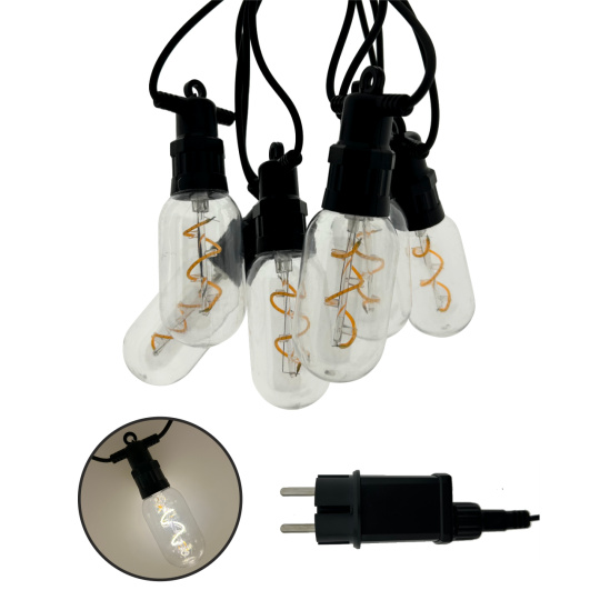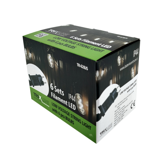 Vytvořte si příjemnou atmosféru na zahradě, terase nebo balkóně s dekorativním LED osvětlením TR-628JS. Tento světelný řetěz obsahuje 6 stylových žárovek v teplé bílé barvě (2700K) na celkové délce 4,5 metru. Robustní plastové provedení s krytím IP44 zajišťuje odolnost vůči povětrnostním vlivům, a je tak ideální pro venkovní použití. Světelný řetěz je napájen ze sítě (220–240V) a má bezpečný výstup 31V DC / 3,6W. Díky 3 metrovému přívodnímu kabelu je instalace snadná a flexibilní.
