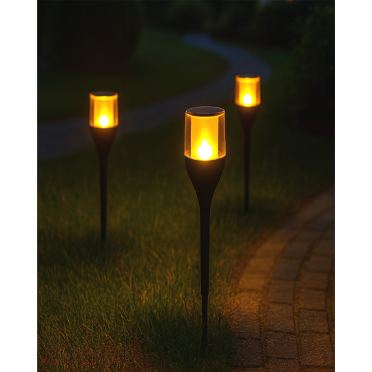 Stylové a úsporné řešení pro osvětlení vaší zahrady, terasy nebo balkónu. LED solární světlo TR-664J snadno díky zápichu naistalujete např. do trávy nebo truhlíku, 12 LED světýlek v louči imituje pohyb plamene. Díky solárnímu napájení je ideální pro venkovní použití bez nutnosti připojení k elektrické síti.