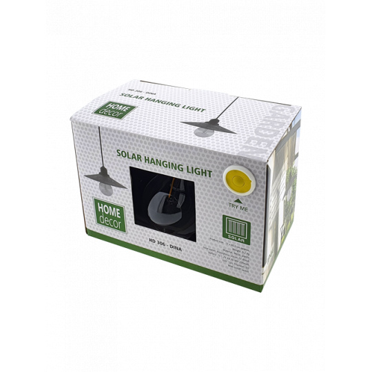 Závěsná solární lampa DINA. Závěsná solární lampa s LED technologií. Ideální na zahradu, pergolu, altánek. Samozřejmostí je snadná manipulace.