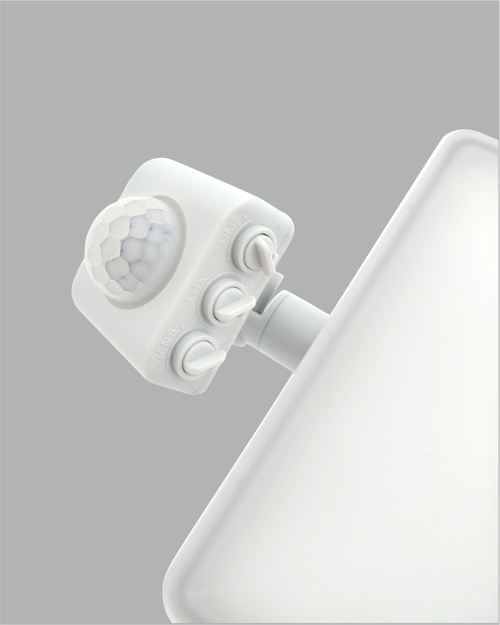 Pohybový senzor lze nasměrovat požadovaným směrem a přizpůsobit dle potřeby. Nastavit můžete detekční dosah (1–7m), úroveň osvětlení (10–2000lux) i dobu svícení (10 sekund až 7 minut).