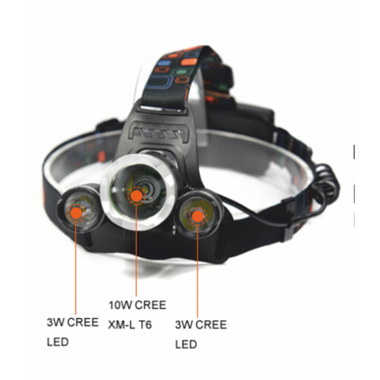 - Fényforrás: 10W CREE LED XM-L T6 + 2x3W CREE LED