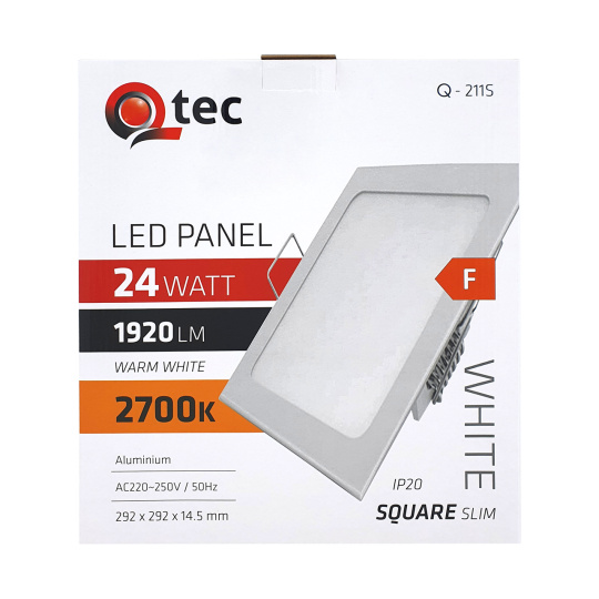 LED panel Qtec Q-211S 24W, čtvercový vestavný 2700K