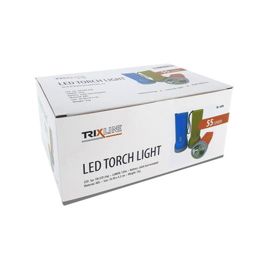 Praktická, lehká LED ruční svítilna TR-049L Trixline je napájena pomoci 2xAA tužkových baterií (nejsou součástí balení). K zapnutí slouží vypínač umístěný na těle svítilny. Tělo svítilny má obdelníkový tvar. Uvedená cena je za 1ks svítilny. V nabídce máme 3 barevné provedení - žlutou, oranžovou a modrou (do poznámky v objednávce můžete uvést o kterou barvu svítilny máte zájem).