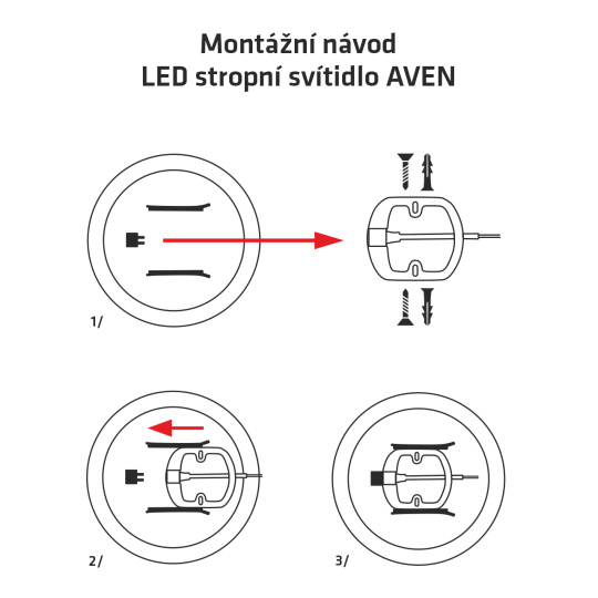 - Připevněte držák světla k pevnému podkladu např. na strop zeď apod. (součástí balení 2 šroubky, 2 hmoždinky).