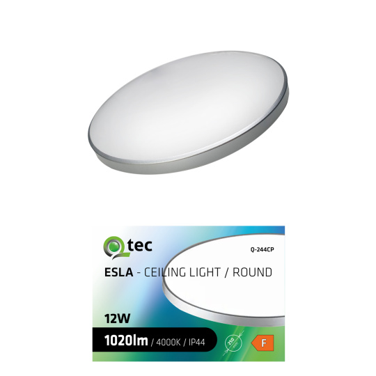 LED stropní svítidlo ESLA Q-244CP 12W 1020lm 4000K ø25cm/kruhové stříbrné QTEC