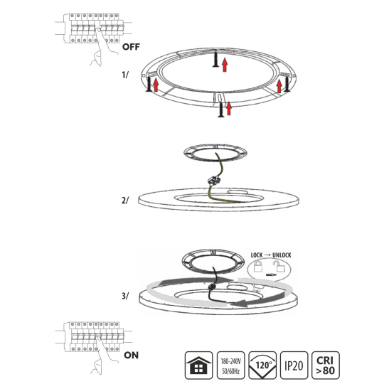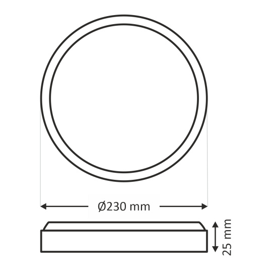 - Vnější rozměr světla: ø230x25mm