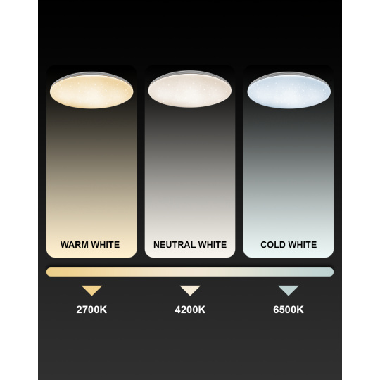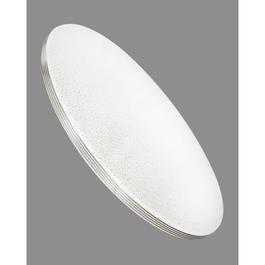 LED stropní svítidlo TR-612C - VENTA Trixline v bílé barvě se čtyřmi stříbrnými proužky po obvodu a třpytivým světelným efektem. Svítidlo má variabilní design, kdy můžete odejmout stříbrné proužky a ponechat pouze čistě bílé okraje. Je určeno do vnitřních prostor jako jsou obývací pokoje, ložnice, haly, kanceláře, chodby a podobná místa. Pomocí přiloženého ovladače můžete přepínat mezi třemi světelnými teplotami v rozmezí 2700K až 6500K, které lze stmívat dle potřeby pro navození příjemné atmosféry. Při maximálním ztlumení klesá spotřeba až na pouhých 8W z původních 60W, což zaručuje úsporu energie. Další možností na dálkovém ovladači je i noční režim a funkce 30 vteřin po jejichž uplynutí se LED svítidlo samo vypne. Svítidlo si po vypnutí pamatuje poslední nastavený režim, což zajišťuje pohodlné a intuitivní používání.