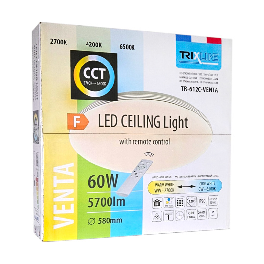 LED stropní svítidlo TR-612C - VENTA 60W 5700lm ø58cm CCT + ovladač Trixline