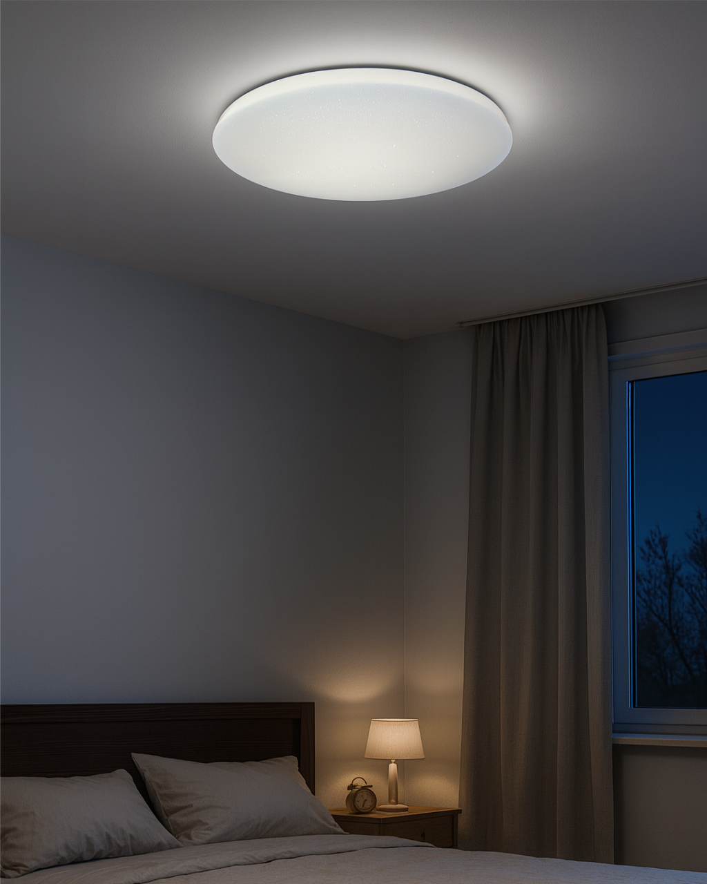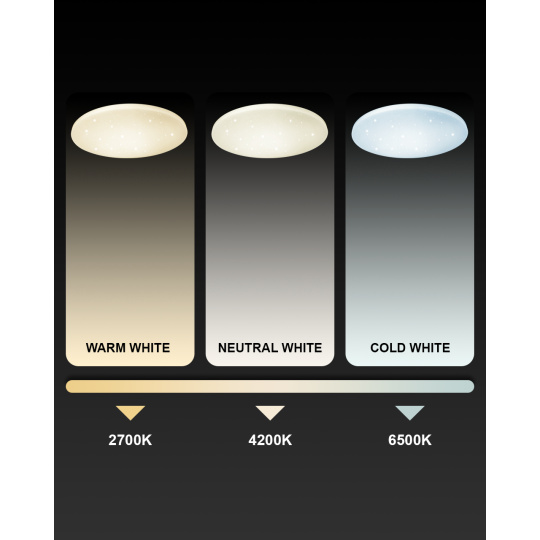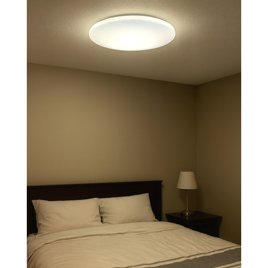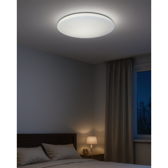 LED stropní svítidlo TR-602C - IPOLY Trixline v bílé barvě se třpytivým efektem je určeno do vnitřních prostor jako jsou obývací pokoje, ložnice, haly, kanceláře, chodby a podobná místa. Pomocí přiloženého ovladače můžete přepínat mezi třemi světelnými teplotami v rozmezí 2700K až 6500K, které lze stmívat dle potřeby pro navození příjemné atmosféry. Při maximálním ztlumení klesá spotřeba až na pouhých 8W z původních 60W, což zaručuje úsporu energie. Další možností na dálkovém ovladači je i noční režim a funkce 30 vteřin po jejichž uplynutí se LED svítidlo samo vypne. Svítidlo si po vypnutí pamatuje poslední nastavený režim, což zajišťuje pohodlné a intuitivní používání.
