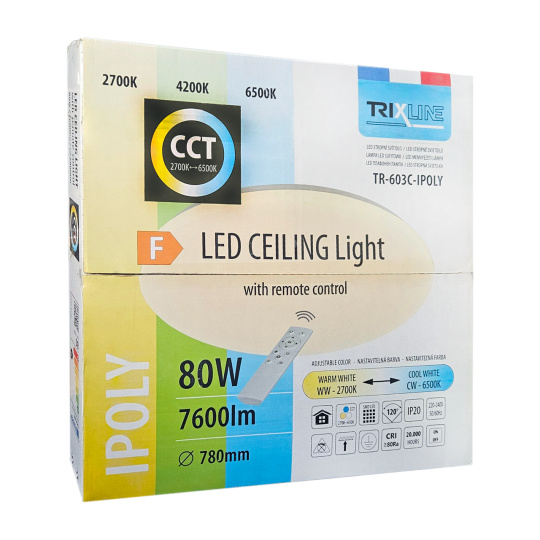 LED stropní svítidlo TR-603C - IPOLY 80W 7600lm ø78cm CCT + ovladač Trixline