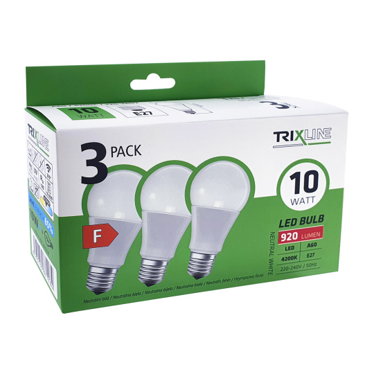 TRIXLINE LED izzó 10W A60 E27 neutrál fehér 3 PACK