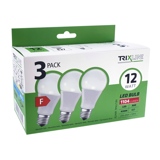 LED izzó Trixline 12W A60 E27 neutrális fehér 3 PACK