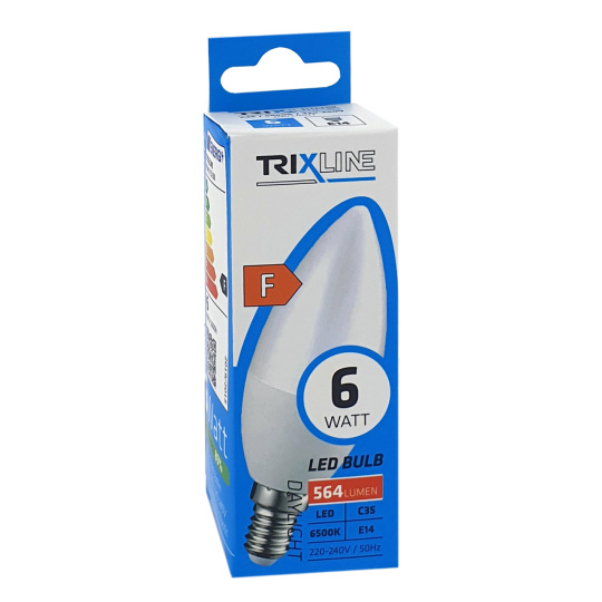 LED žárovka 6W 564lm E14 C35 studená bílá Trixline
