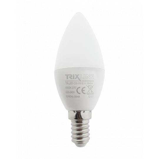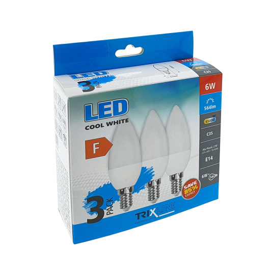 LED izzó Trixline 6W C35 E14 hideg fehér 3 PACK
