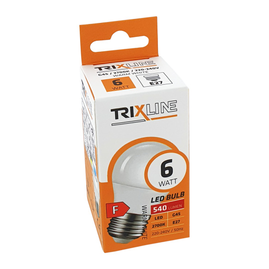 LED izzó Trixline 6W E27 G45 meleg fehér