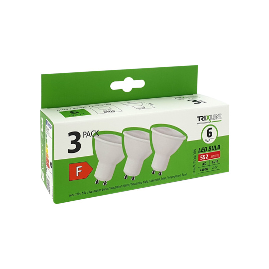 LED izzó Trixline 6W GU10 neutrális fehér 3 PACK