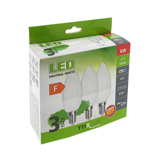 LED žárovka Trixline 6W C35 E14 neutrální bílá 3 PACK