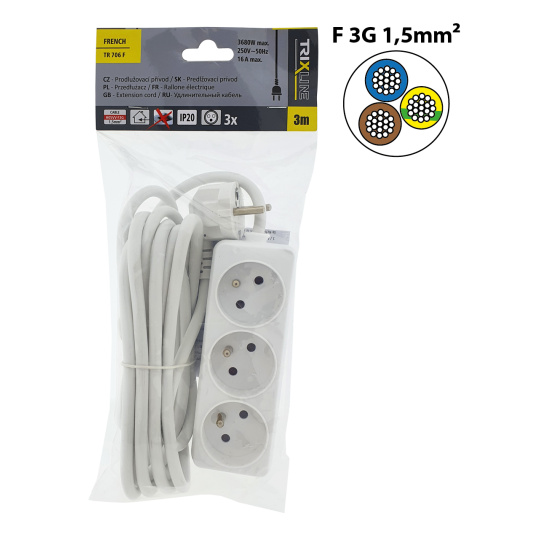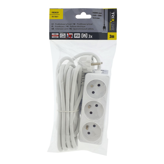 Slouží k prodloužení elektrické energie tam, kam pevná zásuvka nedosáhne. Disponuje třemi zásuvkami.
