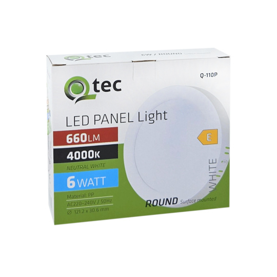 Q-110P LED panel 6W 660lm 4000K bílý - kruhový přisazený Qtec