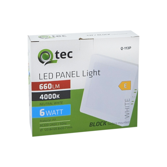 Q-113P LED panel 6W 660lm 4000K bílý - čtvercový přisazený Qtec
