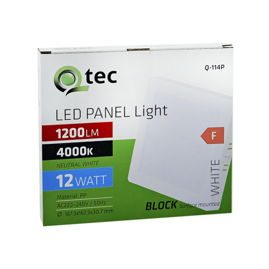 Q-114P LED panel 12W 1200lm 4000K bílý - čtvercový přisazený Qtec