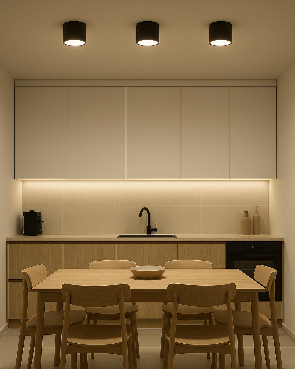 - Kuchyně – lze použít nad pracovní desku nebo jídelní stůl pro cílené osvětlení
