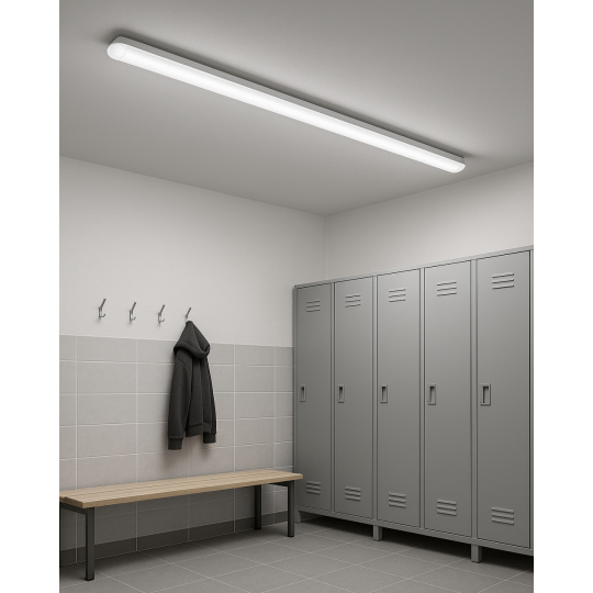 Svítidlo Q-156 TRI-PROOF LED 48W IP65 značky QTEC je výkonné a odolné prachotěsné svítidlo, vhodné pro náročné podmínky. Díky IP65 ochraně je ideální do vlhkého a prašného prostředí, například do skladů, garáží, dílen, šaten, technických místností nebo průmyslových hal.