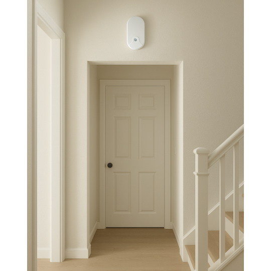 - Pohybový senzor – detekční úhel 180°, dosah 5–8 m