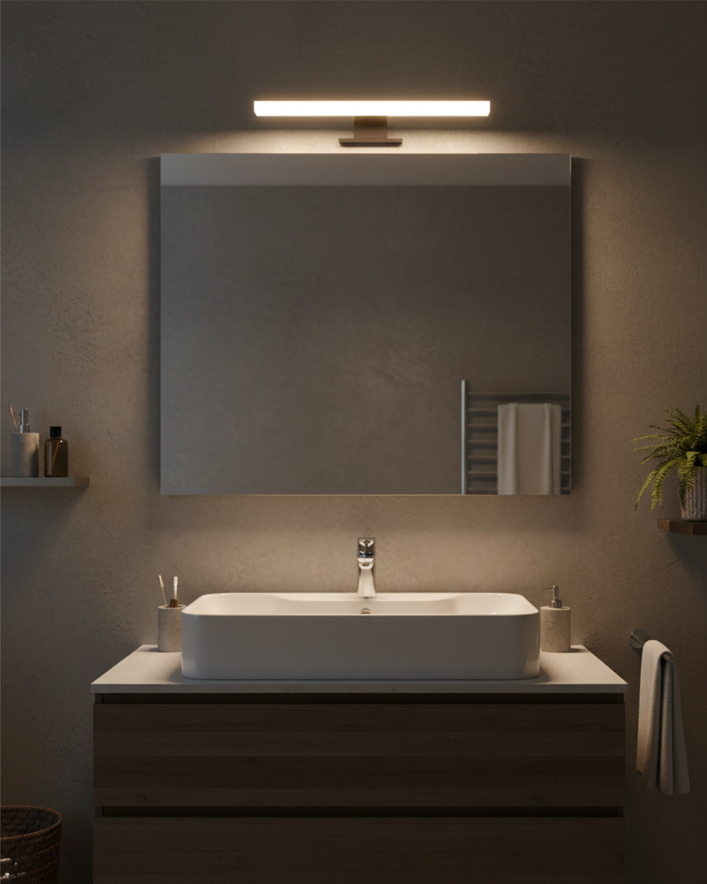 Předností koupelnového nástěnného osvětlení Q-308B Qtec 8W je moderní design, kvalitní zpracování, stupeň krytí IP44 umožňuje instalovat světlo do místnosti se zvýšenou vlhkostí např. koupelny, 3v1 způsoby montáže na zrcadlo, skříňku nebo stěnu. Zdrojem světla jsou energeticky úsporné LED diody, které vyzařují neutrální bílou barvu světla 4000K příjemnou pro oči.