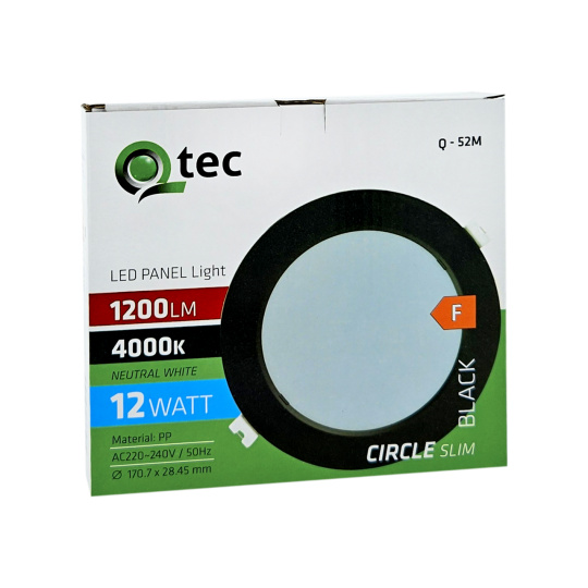 Q-52M LED panel 12W 1200lm 4000K černý - kruhový vestavný Qtec