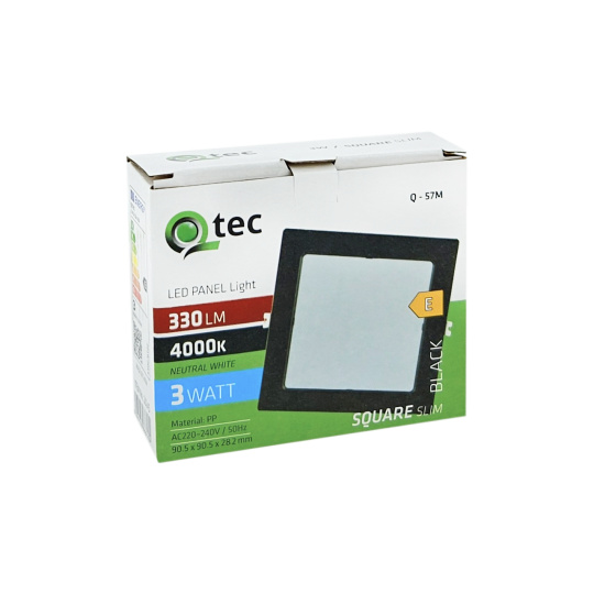 Q-57M LED panel 3W 330lm 4000K černý - čtvercový přisazený Qtec
