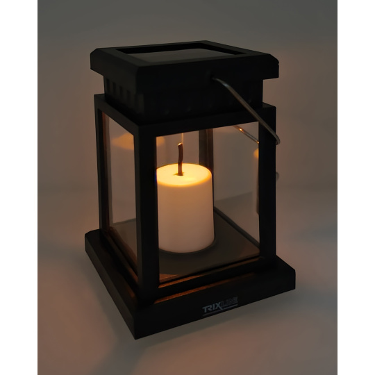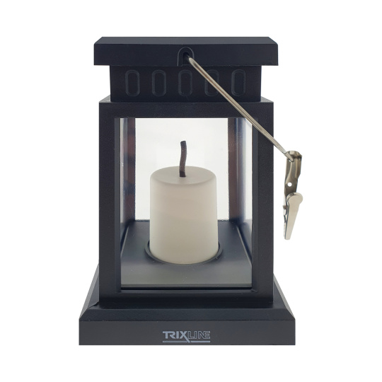 Solární venkovní, zahradní lucerna TR 383S Trixline s bílou svíčkou a LED žárovkou napodobující klasický plápolající plamen svíčky. Díky odolnosti proti stříkající vodě IP44 lucerna nabízí široké využití. Vhodná jako zahradní dekorace k osvětlení terasy, balkonu, pergoly, schodiště, chodníku, také při kempování, stanování, pikniku, grilování a dalších venkovních aktivitách. Lucernu lze volně položit nebo zavěsit kovovým kolíčkem. Snadné použití - není potřeba žádné nářadí ani kabeláž. K automatickému zapnutí za soumraku stačí použít volitelný vypínač ON/OFF na vnitřní straně víka se solárním panelem.