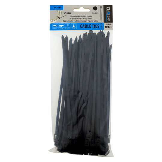 TR CT-110 Stahovací pásky mají univerzální využití v domácnostech, ve stavebnictví, automobilovém průmyslu apod. Slouží k rychlému mechanickému svázání kabelů nebo uchycení kabelů k nosné konstrukci, k balení zboží, sáčků nebo jako háčky, příchytky. Po utažení lze smyčku povolit zobáčkem.