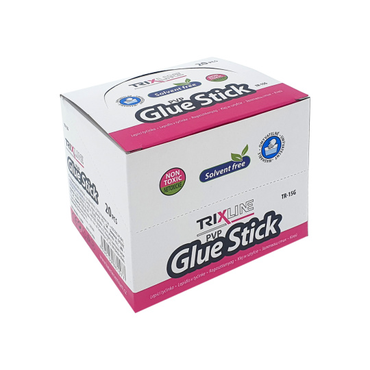 Tyčinkové tuhé lepidlo TR-15G Trixline pro domácí, školní i kancelářské použití. Vhodné k lepení papíru, kartonu, lepenky, fotopapíru a podobně. Neobsahuje rozpouštědla.