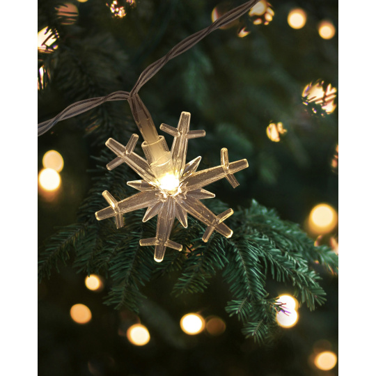 Ozdobte svůj domov nebo zahradu stylovou girlandou s 20 LED světýlky ve tvaru sněhových vloček. Teplé bílé LED osvětlení navodí příjemnou sváteční náladu a díky napájení na baterie ji snadno umístíte kamkoli – i bez zásuvky.
