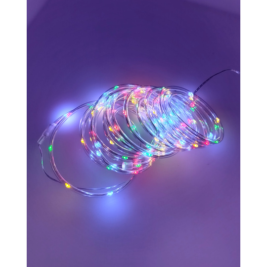 Ozdobte svůj domov nebo zahradu stylovým světelným řetězem se 100 LED světýlky v průhledné, ohebné trubičce. Barevné RGB LED osvětlení navodí příjemnou sváteční náladu a díky napájení na baterie jej snadno umístíte kamkoli – i bez zásuvky.