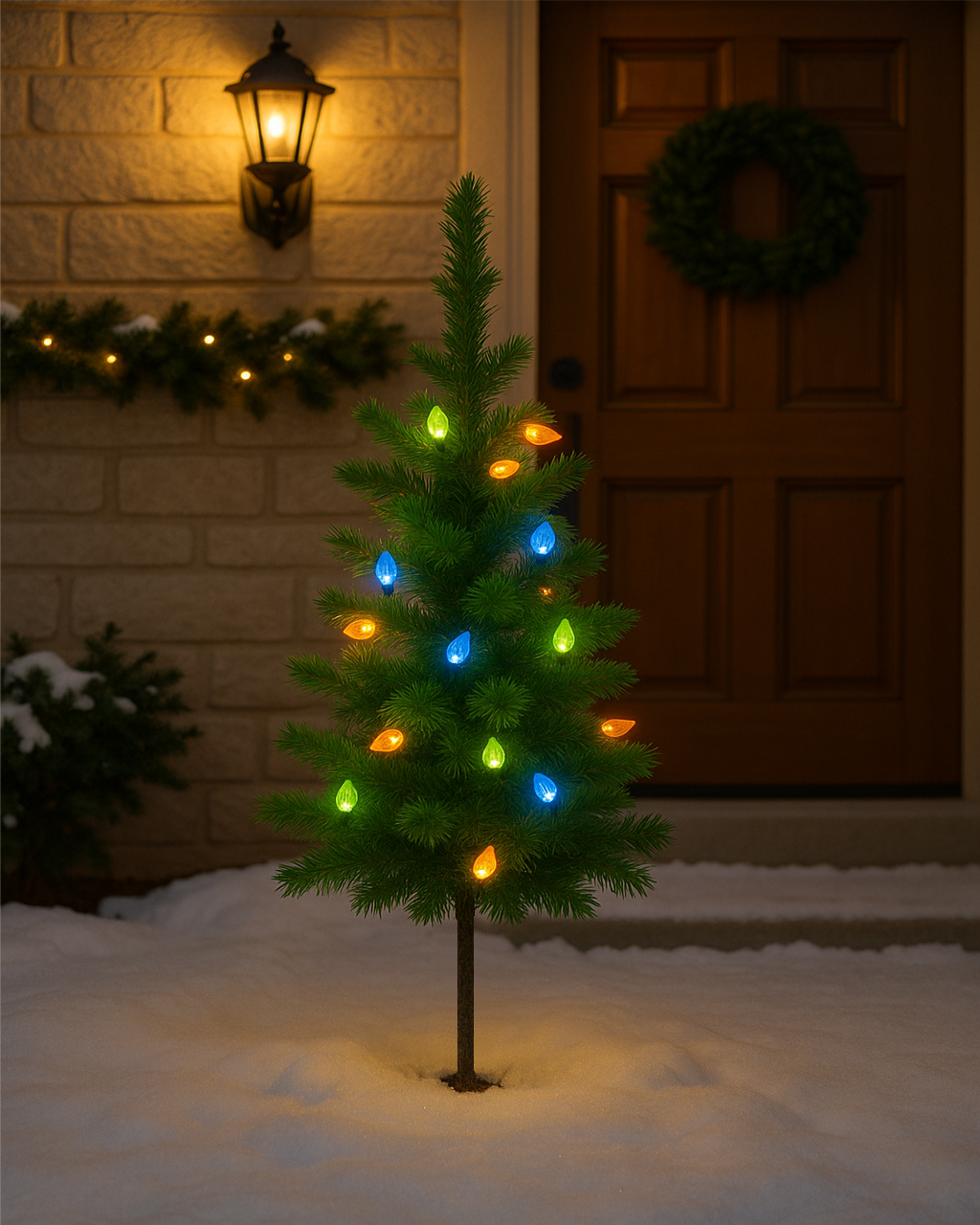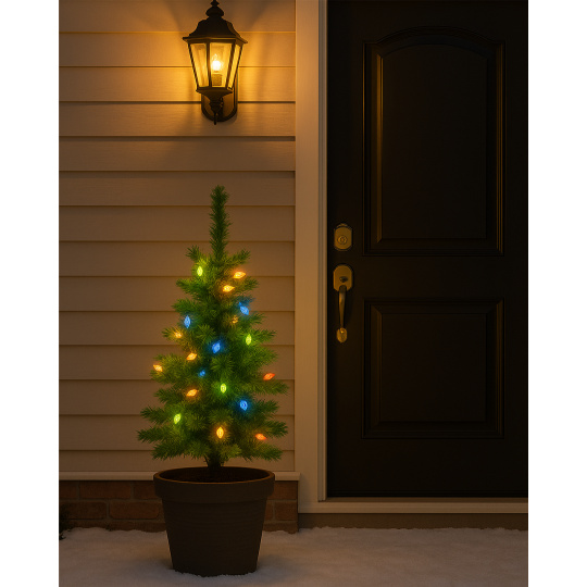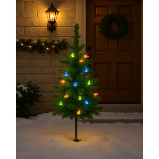 Stromeček je vhodný pro vnitřní i venkovní použití – lze jej snadno zapíchnout do země nebo upevnit do stojánku.